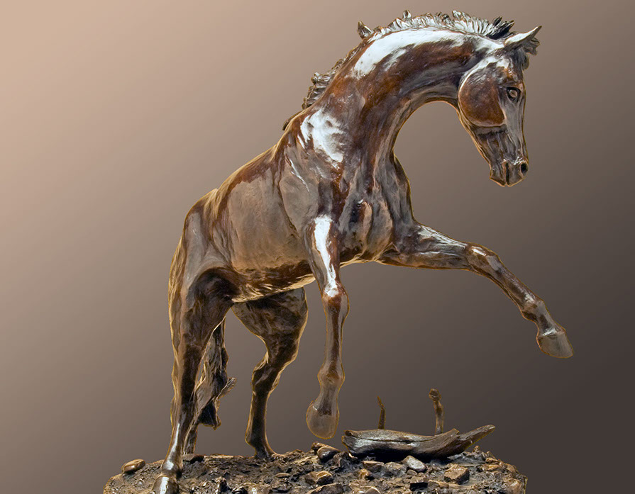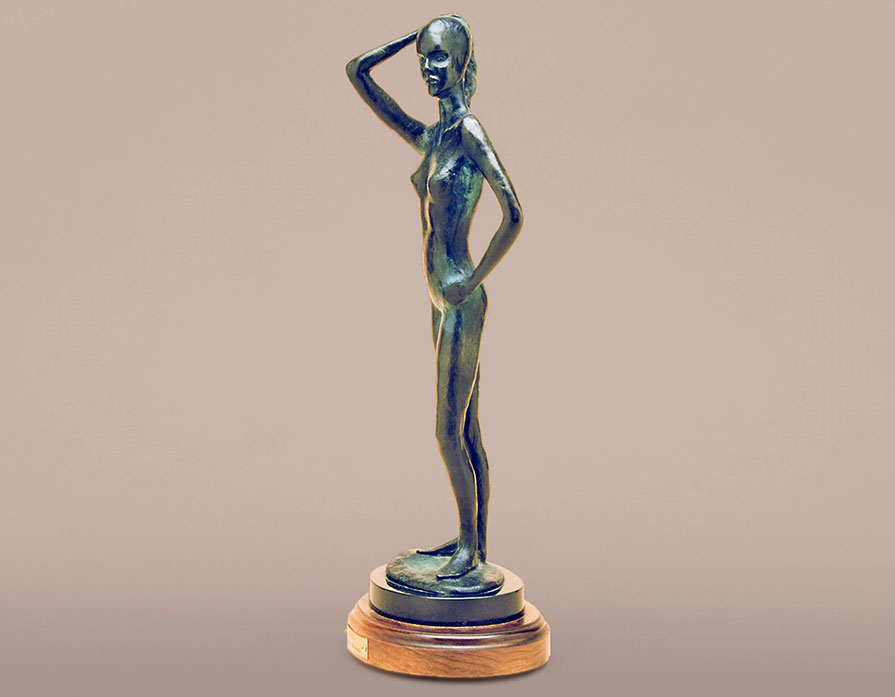 Limited edition of 20, 21 inches tall, bronze on marble.